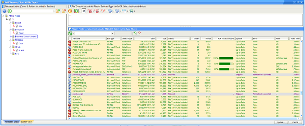 Note: to exclude particular types, click the yellow rotating arrow on the file-type toolbar to show the original file-type options